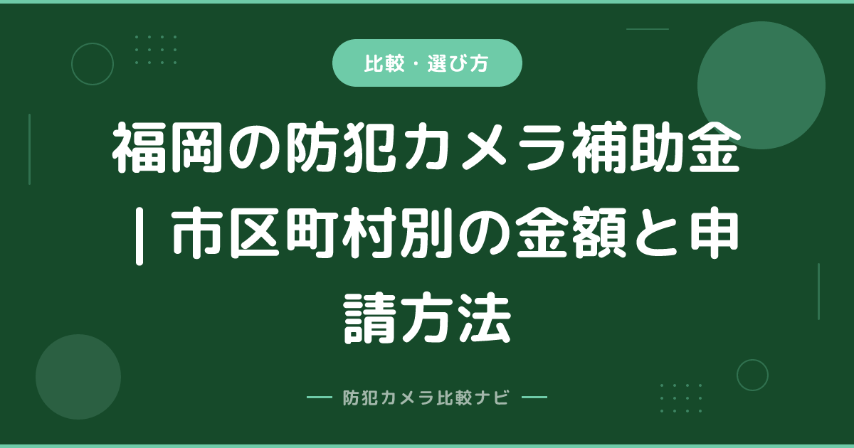 関連記事:防犯カメラ補助金完全ガイド(全国版) /福岡の防犯カメラ設置業者おすすめ /大阪の防犯カメラ補助金 /防犯カメラ設置費用の相場